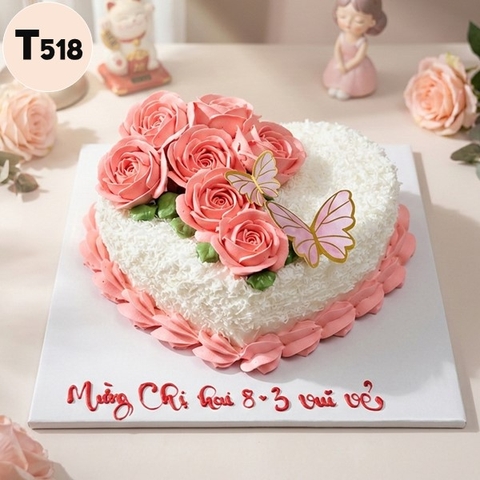 Bánh kem Quốc tế Phụ nữ 8/3 - T518 – Sự kết hợp độc đáo giữa lớp phủ "tuyết trắng" tinh khôi và những đóa hồng rực rỡ dành tặng phái đẹp. Nếu khách đang tìm kiếm một mẫu bánh vừa lạ mắt vừa tinh tế cho ngày 8/3 thì T518 chính là chân ái. Thiết kế đầy tính nghệ thuật giúp tôn vinh vẻ đẹp của người phụ nữ. Tham khảo ngay ưu đãi cực hời tại tiệm em nhé!