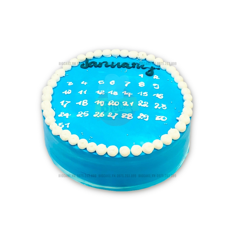 Mô tả: nền xanh viền kem trắng vẽ lịch tháng đơn giản sang trọng không sến