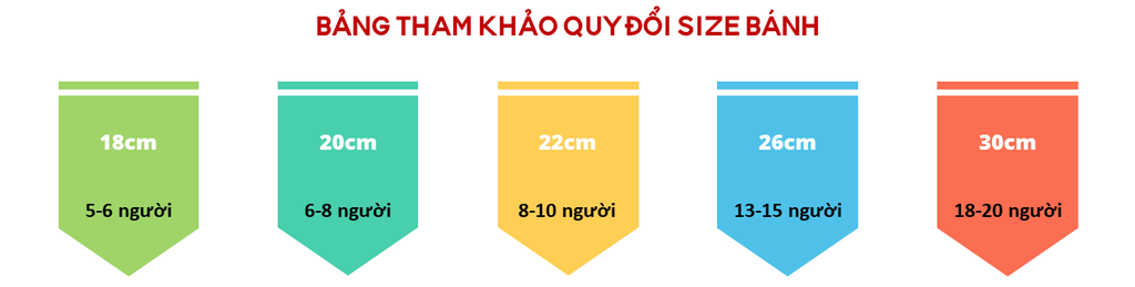 Kích thước: Khách có thể chọn size từ 18cm, 20cm, 22cm, 24cm,..., 40cm. Những bánh trang trí nhiều thì chỉ làm được size vừa trở lên (20, 22cm).