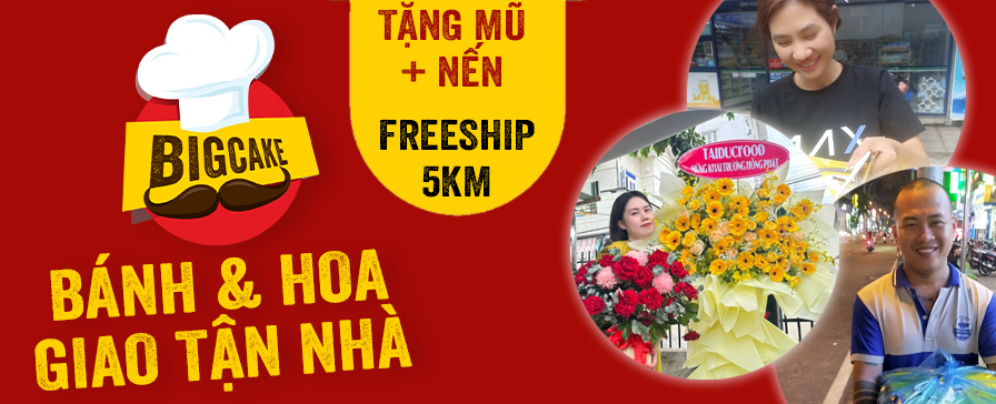 => Dịch vụ giao hàng tận nhà nhanh chóng và tiện lợi, khách chỉ cần xác nhận thông tin đặt hàng và mẫu bánh, đội ngũ giao hàng của Bigcake cam kết giao đúng giờ. Khách còn được tặng kèm mũ + nến + freeship 5km khi đặt hàng online.